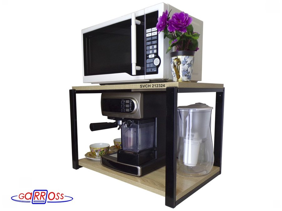 Кронштейн для микроволновки, 38см черный "SVCH 212324" две полки 35х54см, дуб сонома