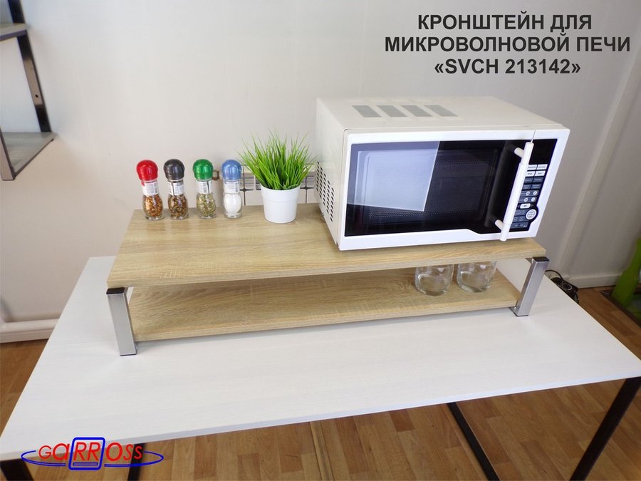 Кронштейн для микроволновки, 17см серебристый "SVCH 213142" две полки 90х30, дуб сонома