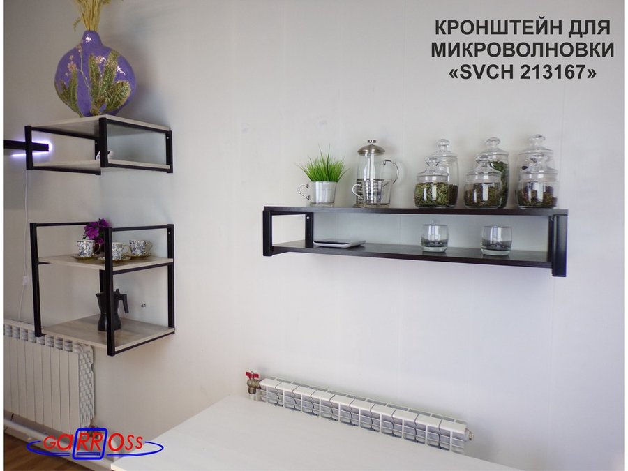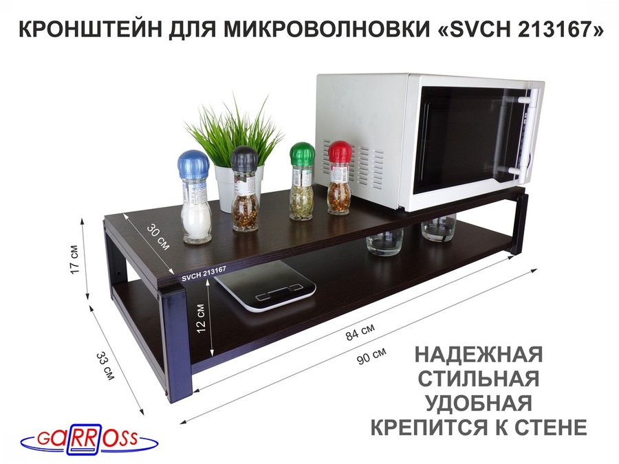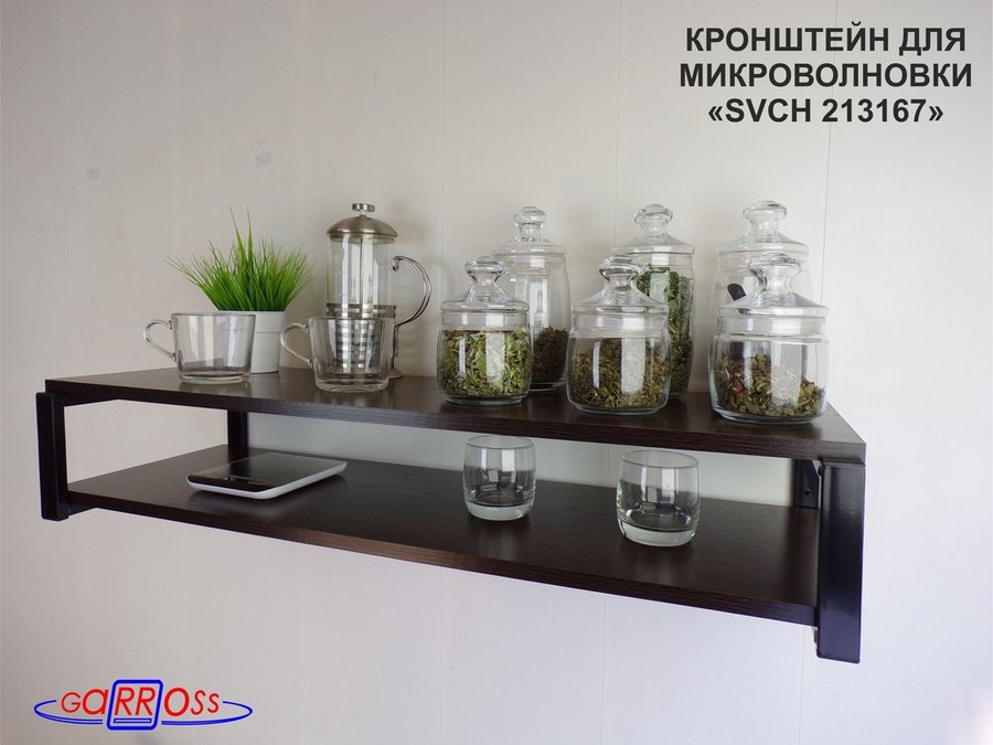 Кронштейн для микроволновки, 17см чёрный "SVCH 213167" под микроволновку,две полки 90х30, венге
