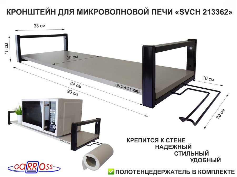 В корзину Купить в 1 клик Кронштейн для микроволновой печи, 15см чёрный "SVCH 213364" полка 90х30, дуб, держатель полотенц.