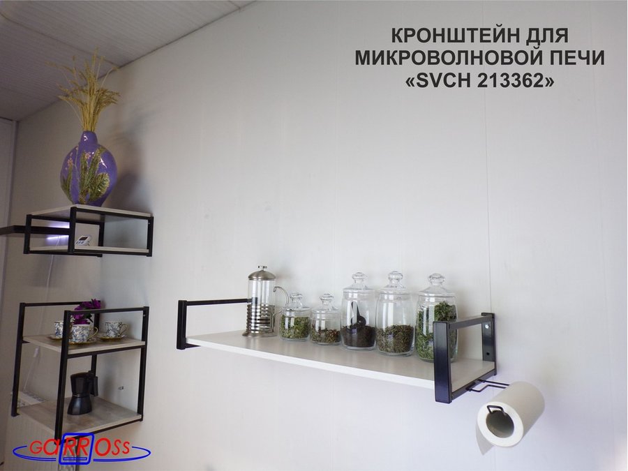 Кронштейн для микроволновой печи, 15см чёрный "SVCH 213362" полка 90х30,сосна с держателем полотенец