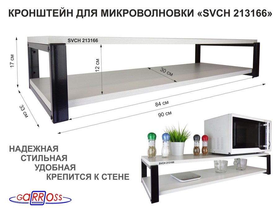 В корзину Купить в 1 клик Кронштейн для микроволновки, 17см чёрный "SVCH 213166" под микроволновку,две полки 90х30, сосна