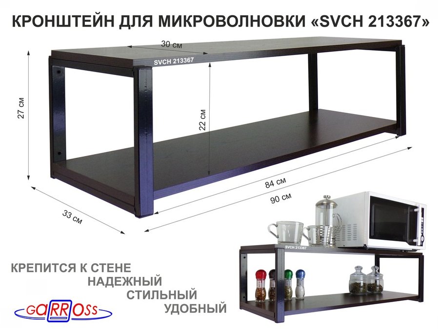В корзину Купить в 1 клик Кронштейн для микроволновки, 27см черный "SVCH 213367" полки для кухни, 90х30, венге