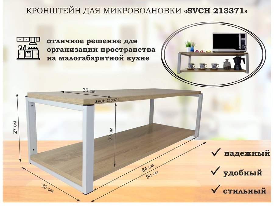 В корзину Купить в 1 клик Кронштейн для микроволновки, 27см серый "SVCH 213371" полки для кухни, 90х30, дуб