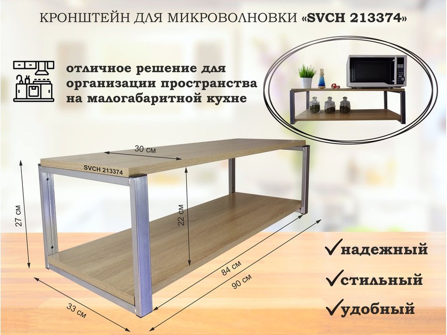 В корзину Купить в 1 клик Кронштейн для микроволновки, серебристый, 27 см "SVCH 213374" полки для кухни, 90х30, дуб сонома