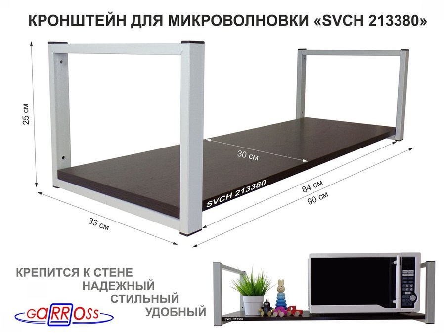 В корзину Купить в 1 клик Кронштейн для микроволновки, 25см серый, 1 полка 90х30см "SVCH 213380" для кухни, венге