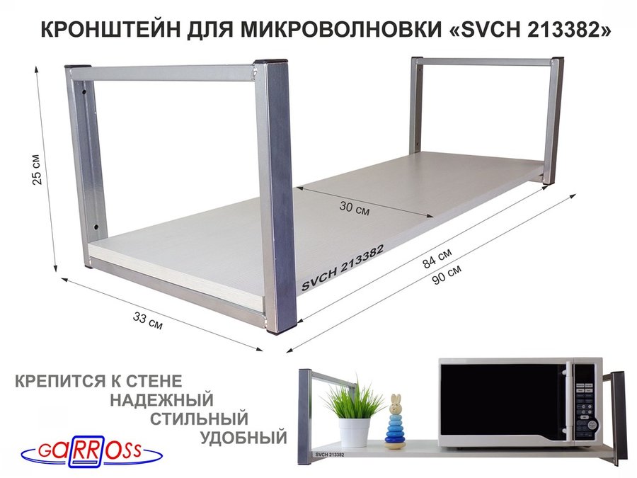 В корзину Купить в 1 клик Кронштейн для микроволновки, 25см серебр, 1 полка 90х30см "SVCH 213382" для кухни, сосна