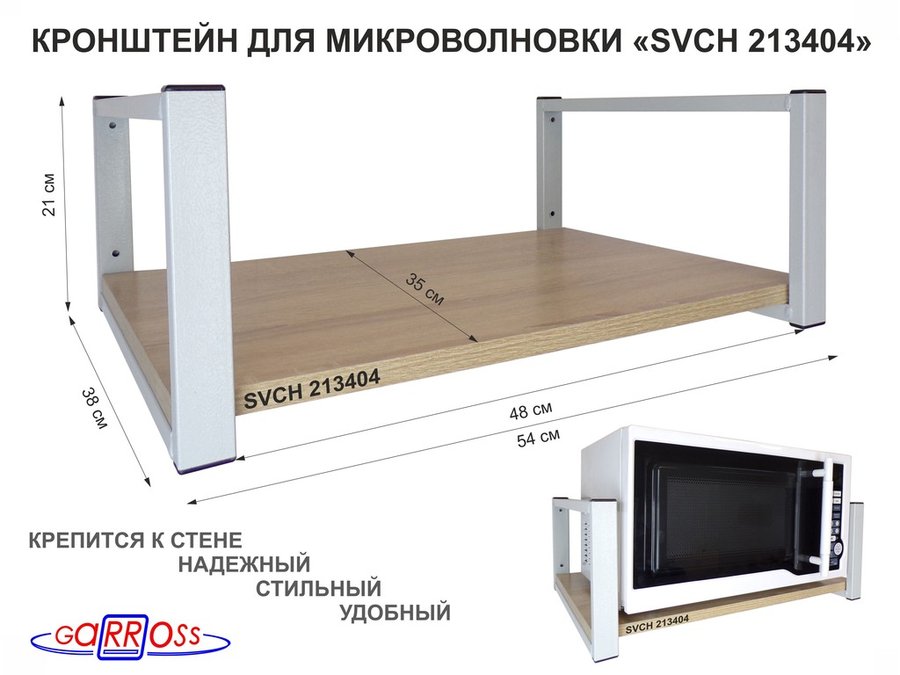 Полки для микроволновок "SVCH" кронштейны для СВЧ печей, высота 21см, 54х35см, 1 уровень