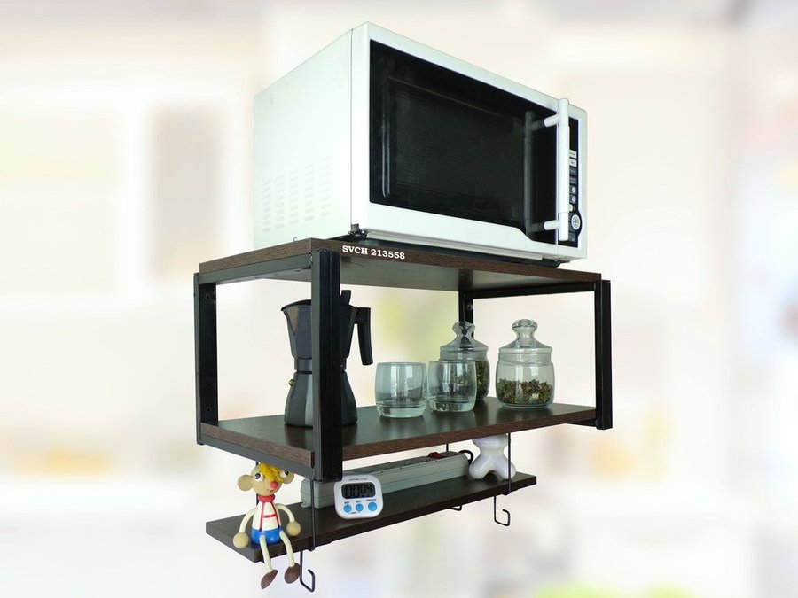 Кронштейн для микроволновки с подвесной полкой, высота 27см, черный "SVCH 213558" 60х30 см , венге