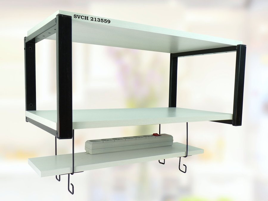 Кронштейн для микроволновки с подвесной полкой, высота 27см, черный "SVCH 213559" 60х30см, сосна