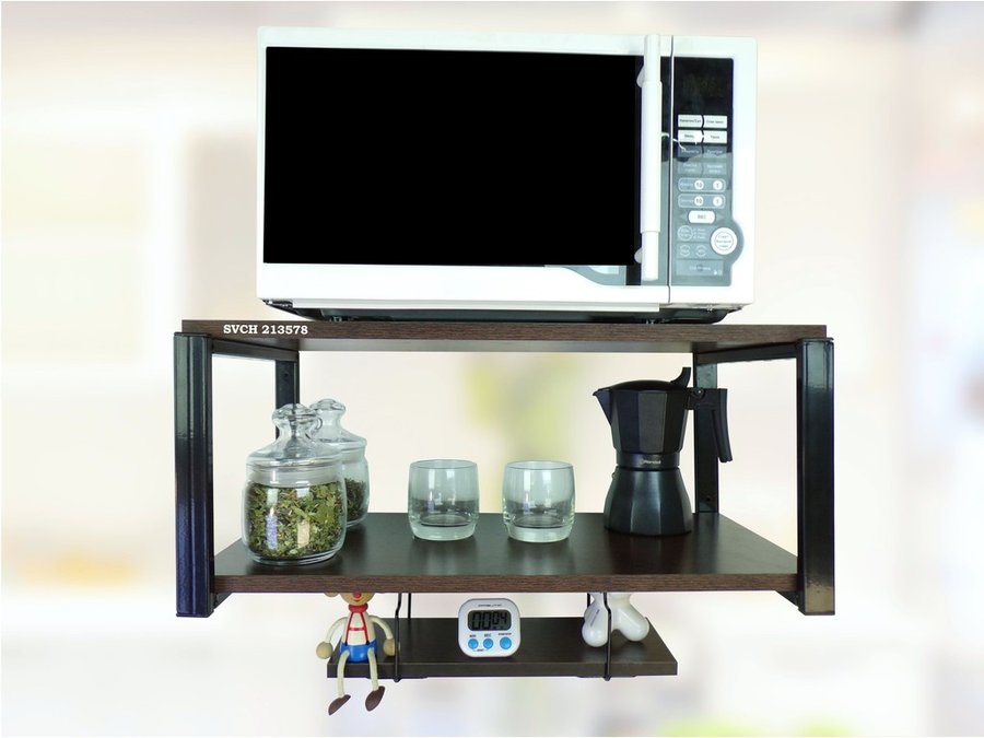 - На верхней полке можно разместить микроволновую печь или другую кухонную технику, на средней отлично "встанет" посуда, баночки под сыпучее и многое другое, а нижняя полка отлично подойдет для специй, таймера или маленьких сувениров