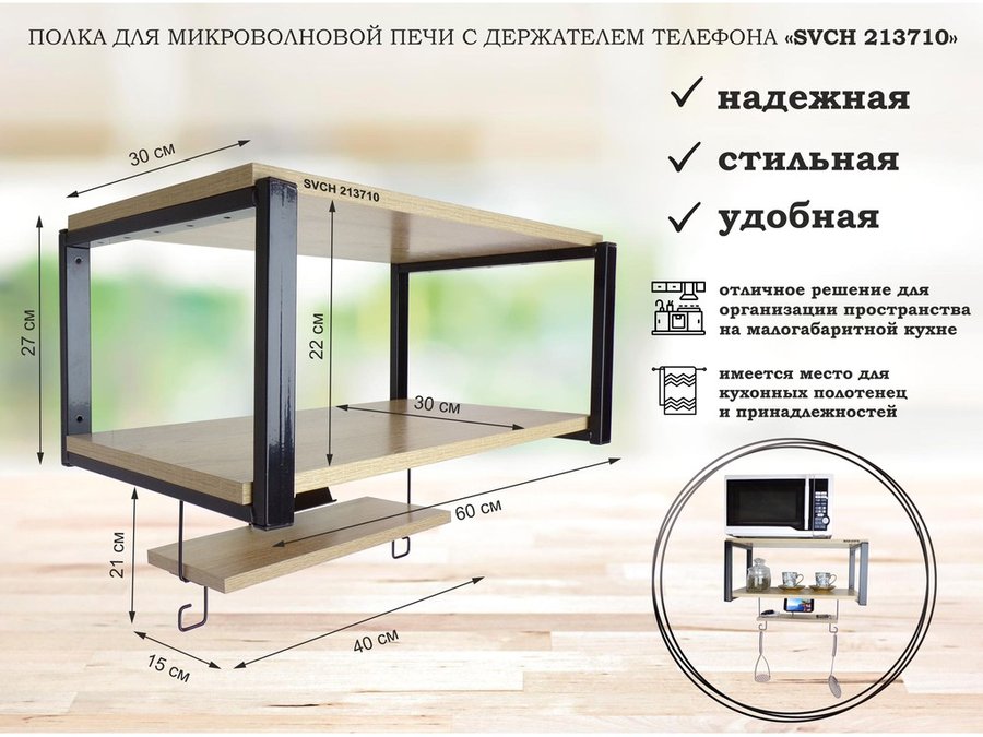 Полки для микроволновок "SVCH" кронштейны для СВЧ печей, высота 27см, 60х30см, держатель смартфона
