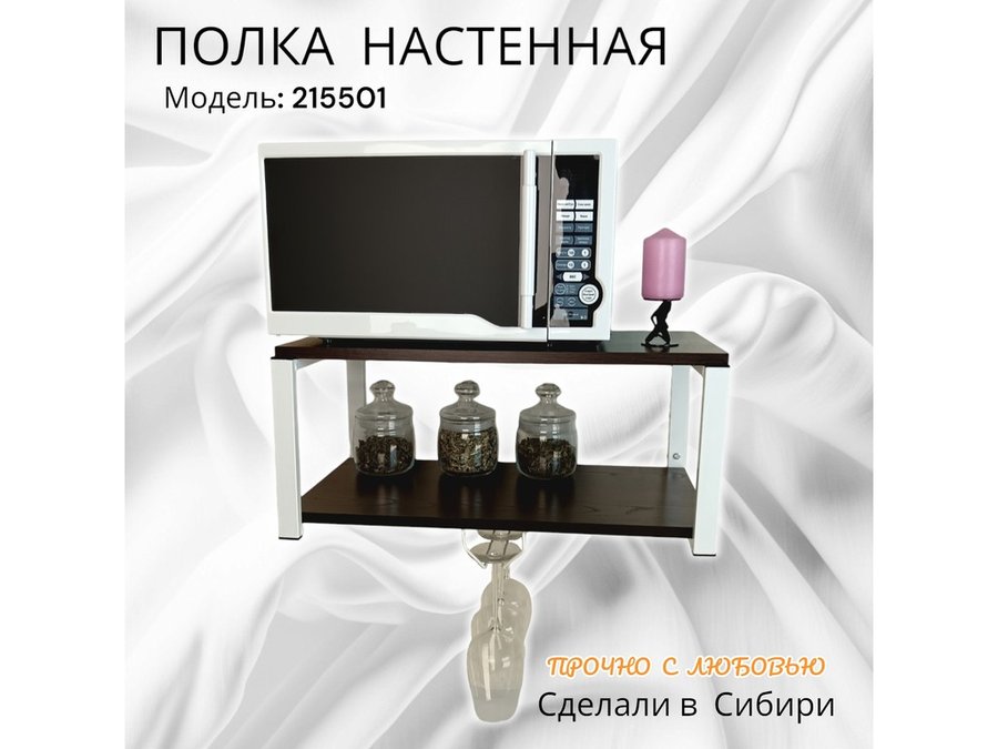 В корзину Купить в 1 клик Полка c одним бокалодержателем для микроволновки "SVCH 215501" 60х30см, белая, венге