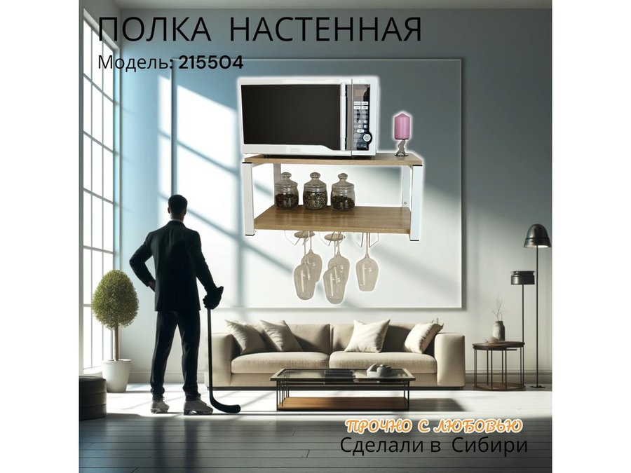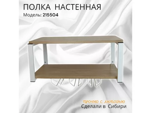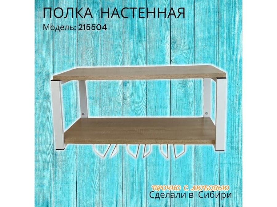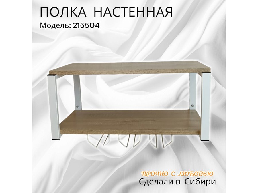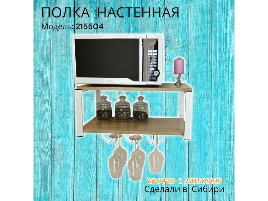 Полка c тремя бокалодержателями для микроволновки "SVCH 215504" 60х30см, белая, дуб сонома
