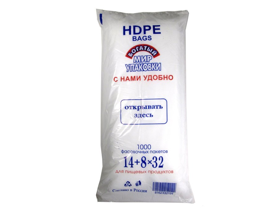 В корзину Купить в 1 клик Пакет фасовочный 14х8х32 ПНД пакет евро Н 8 мкм 800 гр (1000шт./уп) (цена за 1уп