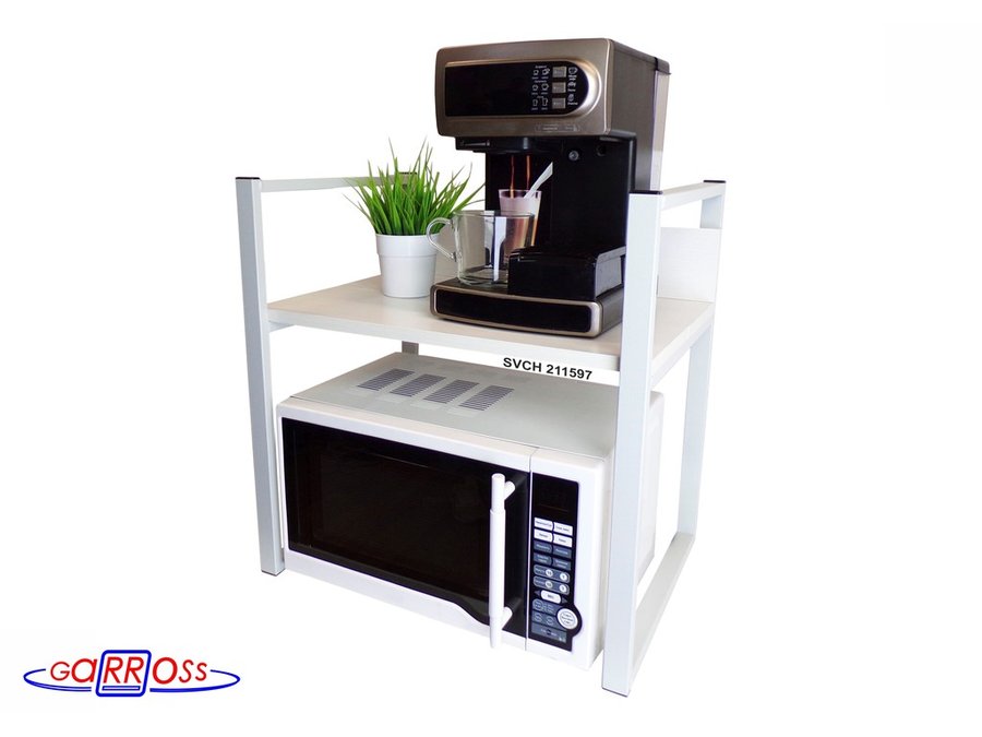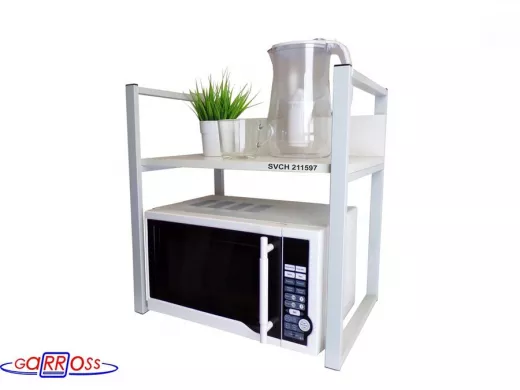 Универсальная подставка для бытовой техники (микроволновой печи, кофемашины, тостера, электрического чайника и др) позволяет эффективно использовать место на столе.