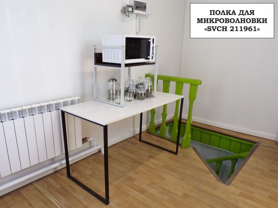 Универсальная подставка для бытовой техники (микроволновой печи, кофемашины, тостера, электрического чайника и др) позволяет эффективно использовать место на столе.