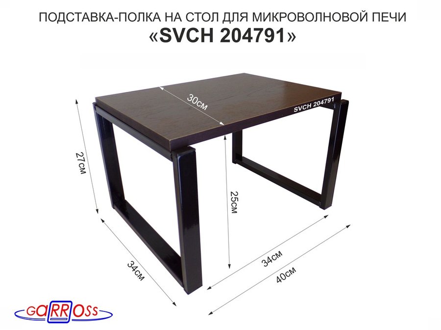 Подставка, полка на стол для микроволновой печи, высота 27см чёрный "SVCH 204791" 30х40см, венге