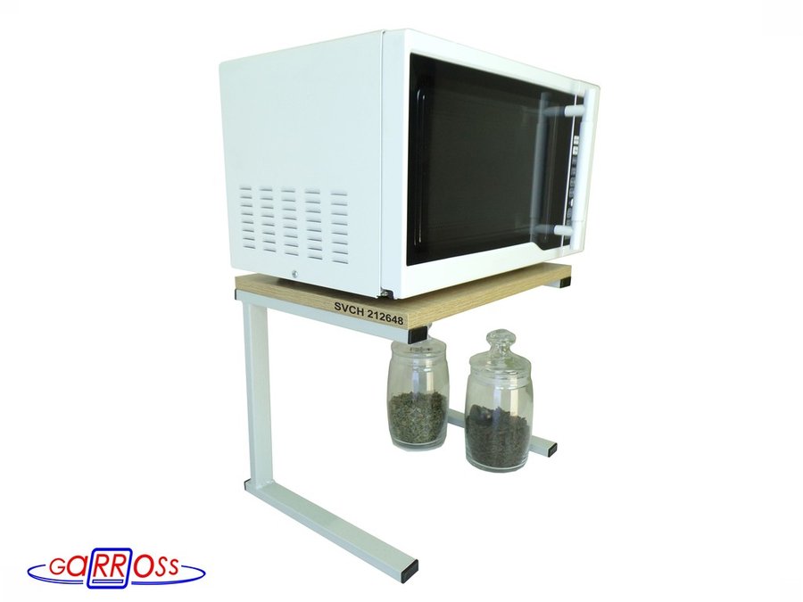 Универсальная подставка для микроволновой печи позволяет эффективно использовать место на столе.