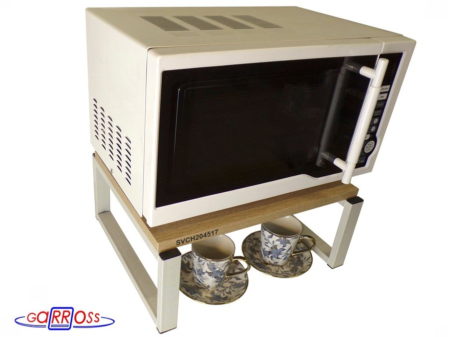 Универсальная подставка для микроволновой печи позволяет эффективно использовать место на столе.