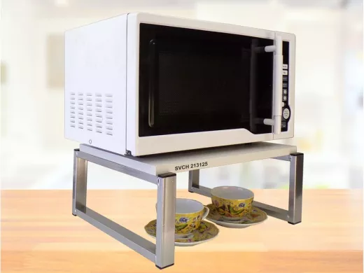 Универсальная подставка для микроволновой печи позволяет эффективно использовать место на столе.