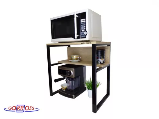 - Универсальная подставка для бытовой техники (микровоновой печи, кофемашины, тостера, электрического чайника и др) позволяет эффективно использовать место на столе.