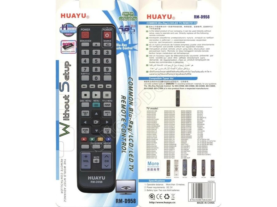 В корзину Купить в 1 клик Пульт универсальный SAMSUNG RM-D958 "PLT-19183" корпус AH59-02299A ( AK59-00104R) HUAYU