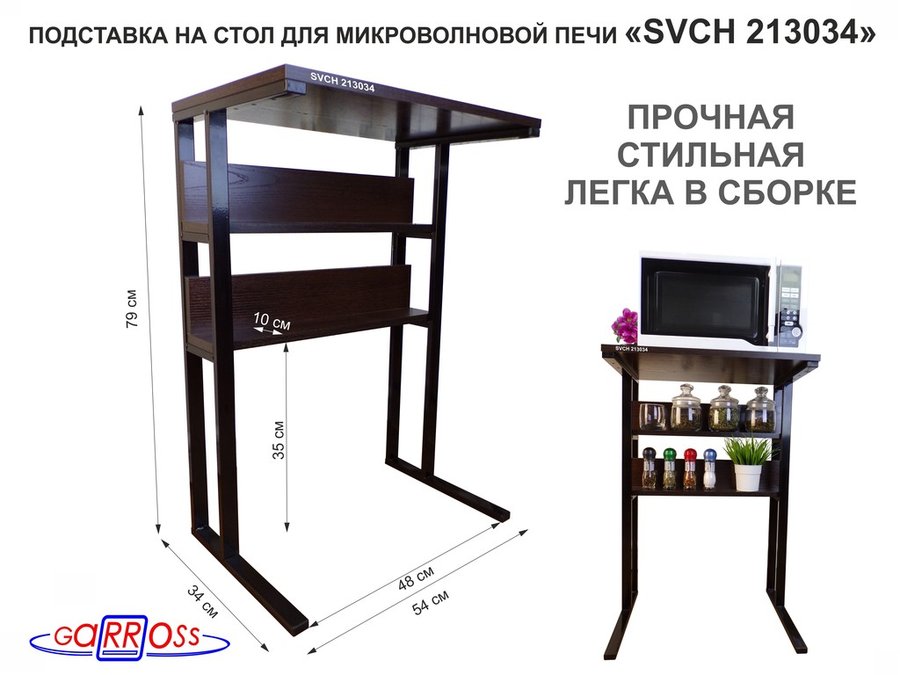 В корзину Купить в 1 клик Подставка на стол для микроволновой печи, серый "SVCH 213037" высота 79 см, 54х35см и 54х8,4см,венге