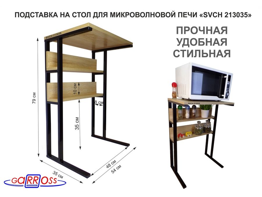 В корзину Купить в 1 клик Подставка на стол для микроволновой печи, серый "SVCH 213038" высота 79 см, 54х35см и 54х8,4см, дуб