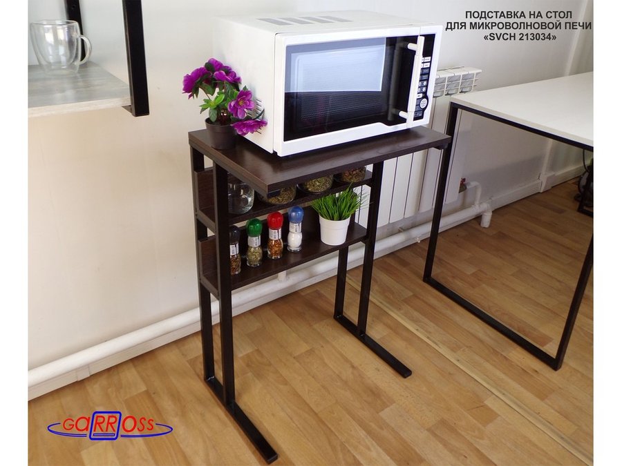 Столик для микровоновой печи позволяет эффективно использовать место на кухне. Важно отметить, что столик занимает немного пространства, поэтому ему найдётся место даже в самой малогабаритной квартире или офисе. Столик, в стиле Лофт, может быть использован в качестве подставки для цветов и книг, места для работы, места для хранения мелочей, в спальню для завтра, как обеденный стол для перекуса, для офиса и отдыха на даче. Для кабинета/спальни/гостиной. Стол универсален и будет отлично смотреться и в интерьере уютного дома, и в интерьере делового офиса, и в салоне красоты. Столик, без труда, можно перенести в любое место.