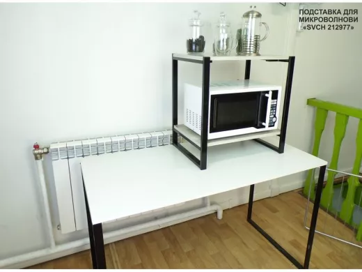 Универсальная подставка для бытовой техники (микроволновой печи, кофемашины, тостера, электрического чайника и др) позволяет эффективно использовать место на столе.