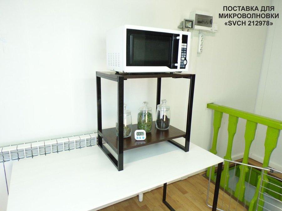 Универсальная подставка для бытовой техники (микроволновой печи, кофемашины, тостера, электрического чайника и др) позволяет эффективно использовать место на столе.