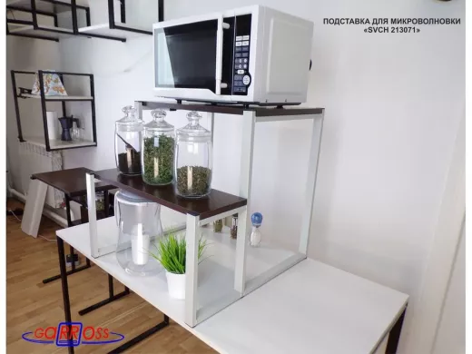 - Универсальная подставка для бытовой техники (микровоновой печи, кофемашины, тостера, электрического чайника и др) позволяет эффективно использовать место на столе.