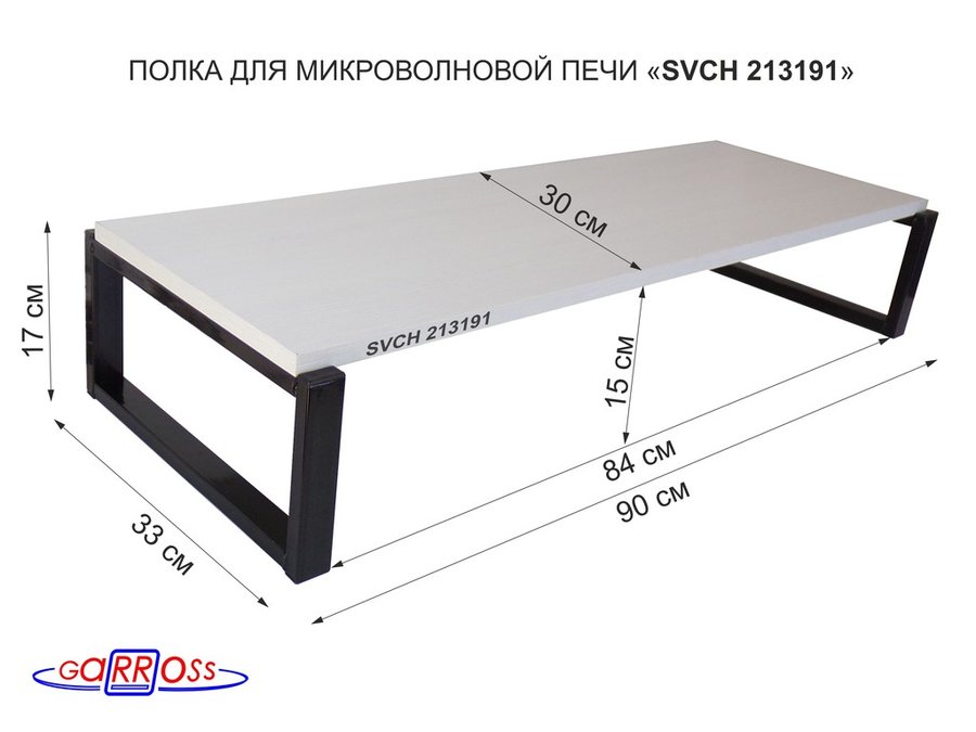 Подставка на стол для микроволновой печи, высота 17см, черный "SVCH 213191" полка 90х30см, сосна