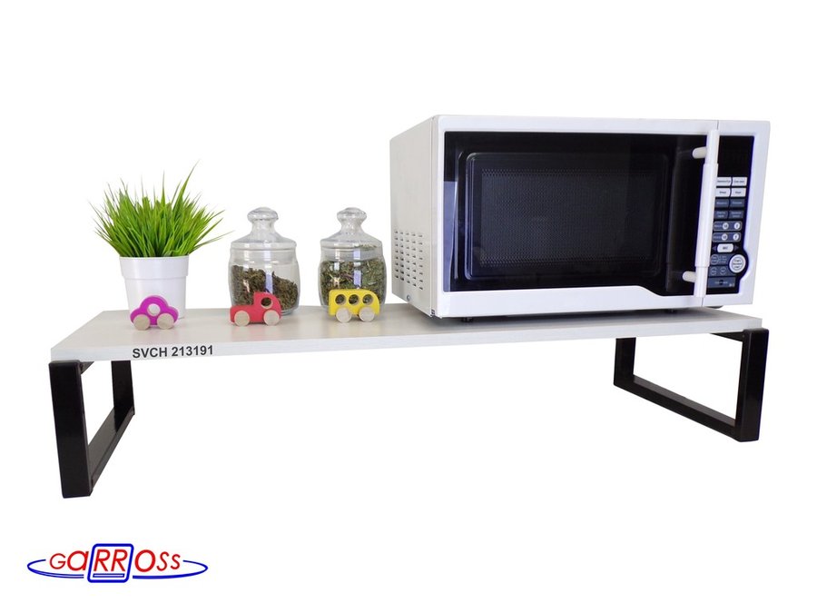 - Универсальная подставка для микровоновой печи позволяет эффективно использовать место на столе.