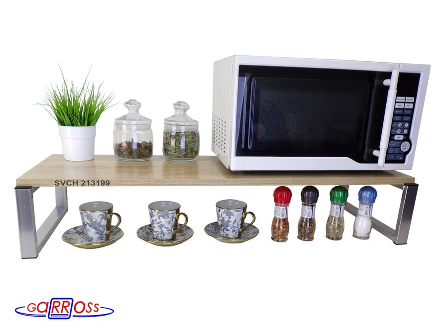 - Универсальная подставка для микровоновой печи позволяет эффективно использовать место на столе.