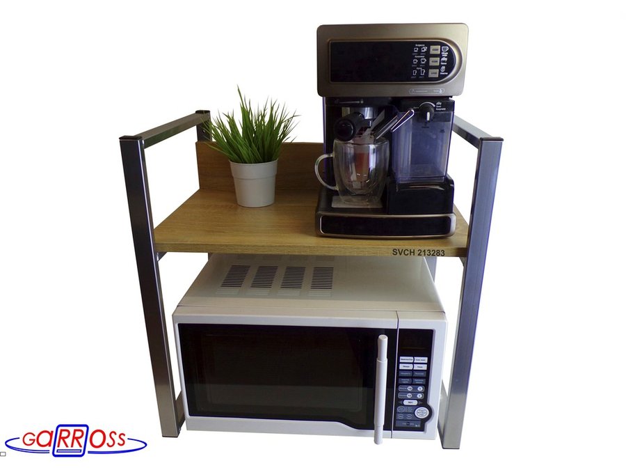 • Универсальная подставка для бытовой техники (микроволновой печи, кофемашины, тостера, электрического чайника и др) позволяет эффективно использовать место на столе.