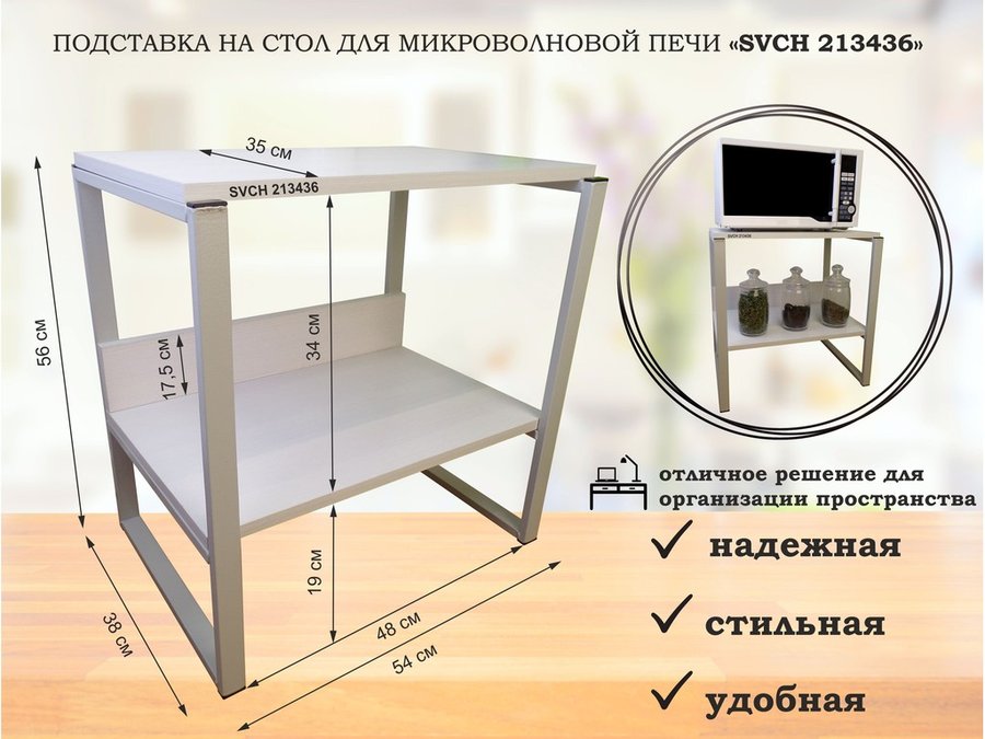 Подставка, полка на стол для микроволновой печи, высота 56см, серебристый "SVCH 214718" 35х54, сосна