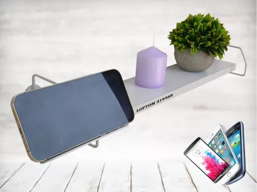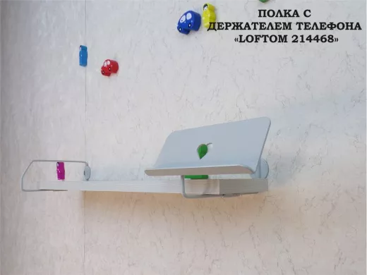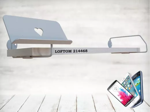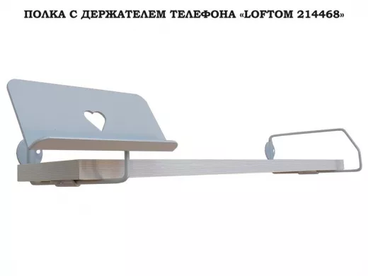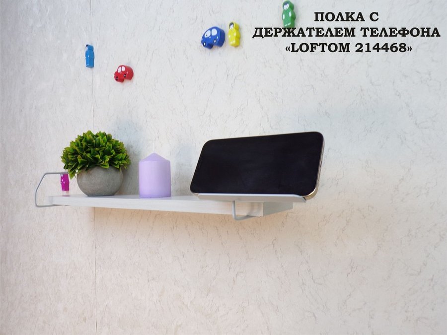 Полка с держателем телефона, серый "LOFTOM 214468" полка 54х10 см, сосна выбеленная