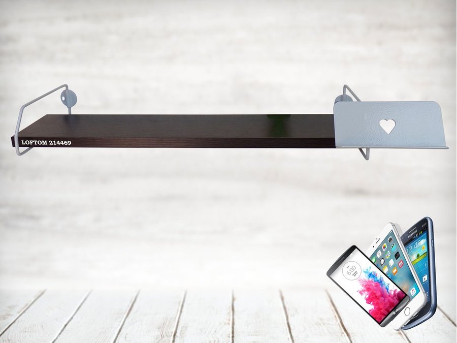 Полка с держателем телефона, серый "LOFTOM 214469" полка 54х10 см, венге