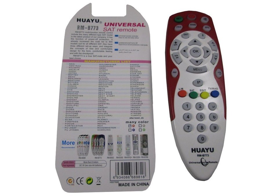 В корзину Купить в 1 клик Пульт для спутниковых ресиверов HUAYU (SAT) UNIVERSAL RM-B773
