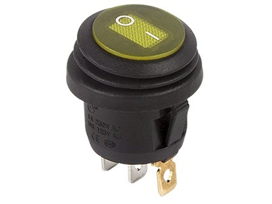 В корзину Купить в 1 клик Выключатель клавишный круглый 250V 6А (3c) ON-OFF желтый с подсветкой ВЛАГОЗАЩИТА REXANT