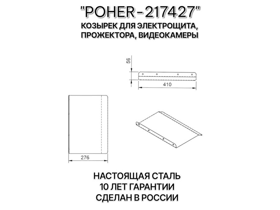 "POHER-217427" козырёк для защиты приборов и устройств от дождя и сосулек, ширина 41 см, вылет 27 см, стальной
