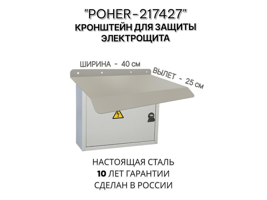 Козырёк для защиты электрощита от дождя "POHER-217427" серый, ширина 41 см, вылет 27 см, сталь 2 мм
