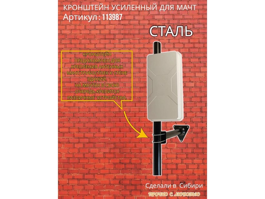 - Кронштейн предназначен для крепления к стене здания с выносом 30 см антенных мачт и трубостоек.