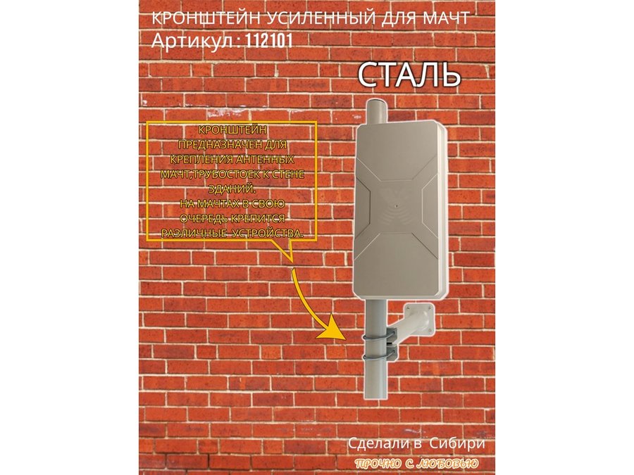 - Кронштейн предназначен для крепления к стене здания с выносом 30 см антенных мачт и трубостоек.
