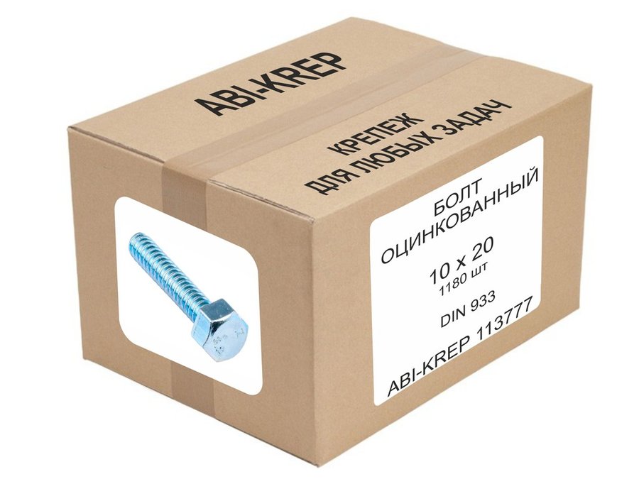 В корзину Купить в 1 клик Болт оцинкованный 10х 20 DIN 933 (1000шт) "ABI-KREP 211476" 21,2кг, ключ 17мм, 21,2гр цена за 1000шт