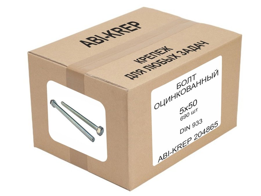 В корзину Купить в 1 клик Болт оцинкованный 5х 50 DIN 933 ( 690шт) "ABI-KREP 204865" 5кг, ключ 8мм, 1шт 7,24гр