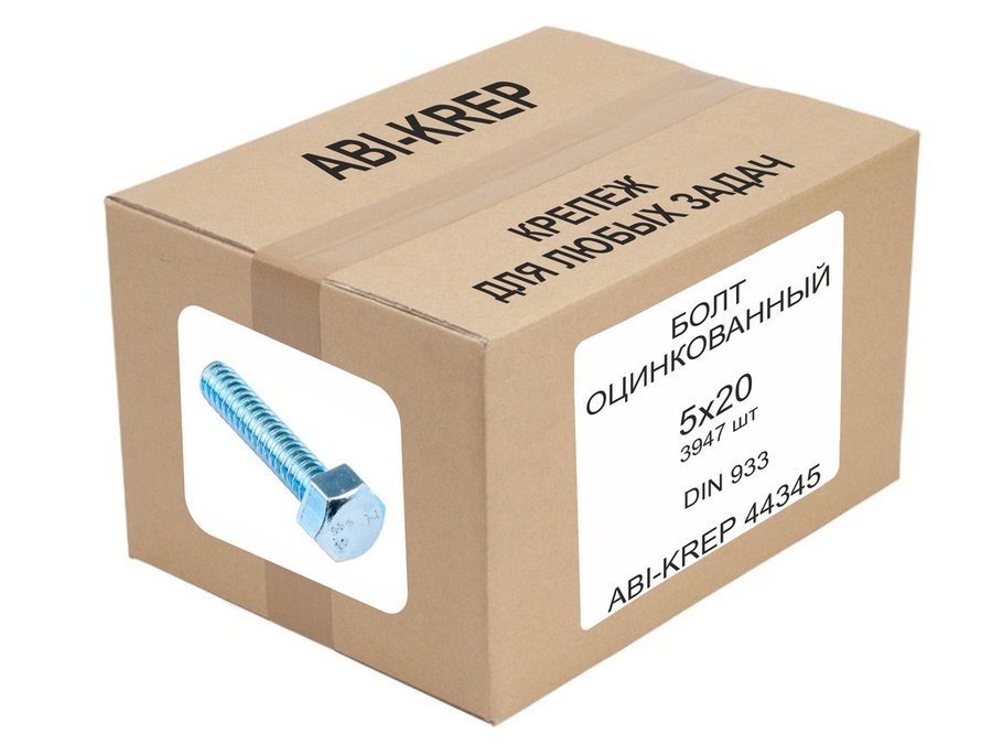 В корзину Купить в 1 клик Болт оцинкованный 5х 20 DIN 933 ( 1шт) "ABI-KREP 9393" 0,004кг, ключ 8мм, 1шт 3,87гр, цена за 1шт