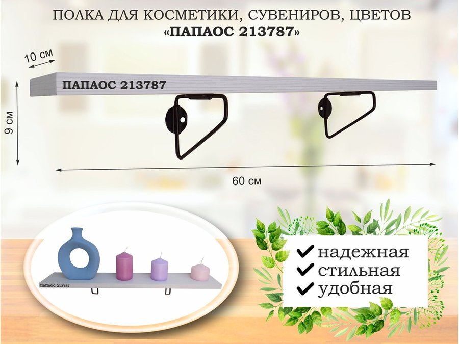 В корзину Купить в 1 клик Полка для косметики, сувениров, цветов, 60х10 см, высота 9 см, черный "ПАПАОС 213787" сосна